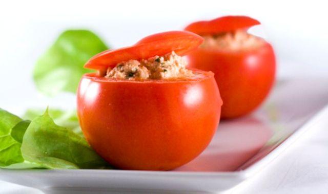 Mod de Preparare: Taiati capacul la rosii si scoateti-le pulpa. Amestecati crema de branza, tonul scurs, cimbrul si masline negre taiate in rondele. Umpleti rosiile cu aceasta compozitie. Decorati cu rondele de masline negre, cimbru si turnati o picatura de ulei de masline.