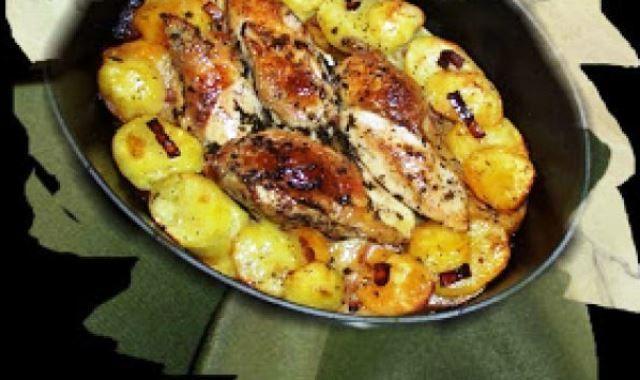 Mod de Preparare: Cartofii se curata de coaja si se taie felii groase de ca 1/2 cm. Acestea se spala, se zvinta si se amesteca cu ceva ulei in asa fel incit uleiul sa-i cuprinda pe toate partile. Ceapa se curata si taie marunt, la fel si usturoiul si se pune deoparte. Pieptii de pui se spala se zvinta bine si li-se taie un buzunar pe mijloc. In feliile de sunca se ruleaza cascavalul si se introduce in pieptul de pui, care in prealabil daca se doreste este bine sa i-se introduca si cite o bucatica de unt frecata cu usturoi, patrunjel si sare. Taietura se prinde in scobitori iar pieptii de pui se condimenteaza deasupra cu sare si piper. Intr-un recipient rezistent la temperaturi inalte se incinge grasime si cind acesta este incinsa bine bine, se prajesc pieptii de pui pe amindoua partile, se scot si se pun deoparte. In grasimea ramasa se prajeste ceapa pina se inmoaie si prinde ceva culoare, se adauga usturoiul, se lasa ca 1 min la prajit. Totul se trage deoparte si se poate proceda in felul urmator. Ori se aseaza cartofii peste ceapa prajita si printre ei Baconul (daca se pune) ori se amestca cartofii cu ceapa prajita. Dupa ce cartofii sunt in oala acestia se aseaza in asa fel incit in mijlocul lor sa se faca loc pt. a se aseza pieptii de pui prajiti. Deasupra se toarna supa, se aseaza capacul, sau o folie de aluminiu si se introduce totul in cuptorul preincins la 220°C. Se lasa ca 30 min cu capac/folie, dupa care se mai lasa fara capac/folie pina ce cartofii si carnea au primit o culoare aurie si crocanta, iar supa a scazut.