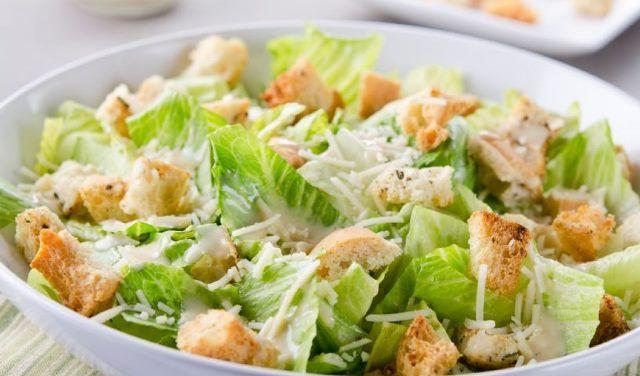 Mod de Preparare: Punem oul in apa deja fierbinte si lasam timp de 1 minut jumatate. Asteptam sa se racesca apoi punem usturoiul in robot, il macinam, adaugam galbenusul si 2 linguri de mustar de Dijon, si mixam bine.Turnam uleiul cate putin, iar cand am terminat, adaugam si restul ingredientelor, deci sucul de lamaie, otetul, sosul Worchestershire, filè-urile de ansoa, si piperul proaspat macinat. Mixam bine si lasam deoparte. Se poate pregati chiar si putin inainte acest sos, si lasa in frigider pana la utilizare. Spalam salata si o taiem grosolan. Putem lasa frunzele intregi daca dorim. Taiem pieptul de pui in felii, condimentam cu sare si piper, apoi il punem pe gratar. Taiem painea cubulete de cca 1 cm. Intr-o tigaie punem o lingura de ulei aromatizat cu un catel de usturoi zdrobit. Le miscam mereu in tigaie, pana devin aurii si crocante. Taiem puiul feliute sau cubulete si il punem peste salata, apoi presaram crutoanele, imprastiem putin sos si servim. Puiul si crutoanele trebuie sa fie proaspat facute, si servite imediat.