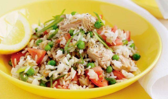 Mod de Preparare: Orezul se pune la fiert in apa cu sare conform instructiunilor de pe cutie. Cand este gata se clateste sub jet de apa rece. Legumele se trag in tigaie cu putin ulei de masline si se lasa la racit. Ceapa se taie marunt, julien, rondele sau cum se nimereste. Maslinele se taie si ele rondele mici. Cateva se pot lasa intregi. Se amesteca toate ingredientele pentru salata si deasupra se toarna dressing-ul. Se poate servi ca si aperitiv sau ca si fel principal. E o masa completa si usoara pentru serile in care nu avem chef de mancaruri elaborate.
