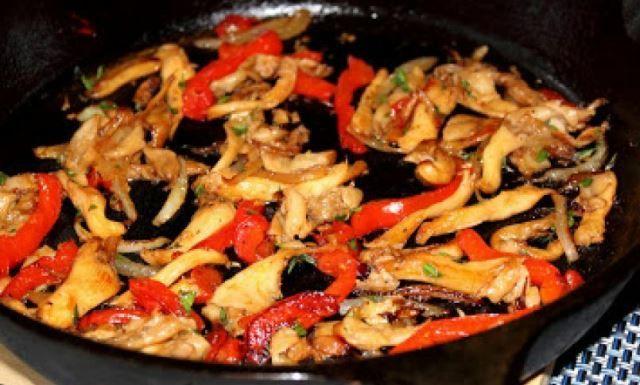 Mod de Preparare: Se incinge uleiul intr-o tigaie, se adauga ceapa si ardeiul. Se calesc pana se rumenesc, 2-3 minute. Se adauga ciupercile si se calesc si ele cateva minute, pana se fac rumene. Se stropeste cu cele 4 linguri de vin si se lasa pana scade vinul. Se adauga usturoiul dat pe razatoarea mica si cimbrul si se potriveste cu sare si piper. Simplu si bun. Daca omitem vinul, o delicioasa gustarica de post.