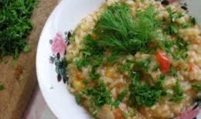 Mod de Preparare: Incepem cu soia, pe care o punem la fiert in apa clocotita si sare, in care adaugam cateva crengute de patrunjel verde. Fierbem cuburile de soia cam 20 minute. Punem orezul curatat de impuritati si spalat la fiert in apa cu sare. Cand este fiert al dente, il luam de pe foc, il clatim in apa rece, dupa care il punem iar la fiert adaugand peste el doar o cescuta de apa. Adaugam rosiile curatate de pielita si ardeiul gras, lasam mancarea la foc mic. Intre timp intro tigaie incingem uleiul, adaugam ceapa taiata foarte marunt, calim usor 1 minut, adaugam boiaua, amestecam si turnam peste orez. Fierbem la foc mic nu mai mult de 10 minute, amestecand din cand in cand. Soia care a fiert vreo 20 minute se scurge de apa, se preseaza usor si se aduga la orez. Tot acum adaugam usturoiul taiat marunt, condimentam, lasam mancarea pe foc 1-2 minute, amestecam sa nu se prinda. Mancarea trebuie sa arate ca un pilaf. Se consuma fierbinte, cu verdeata taiata marunt, presarata in farfurie, doar inainte de servire. Se potriveste bine cu muratura, sau salata de varza proaspata.