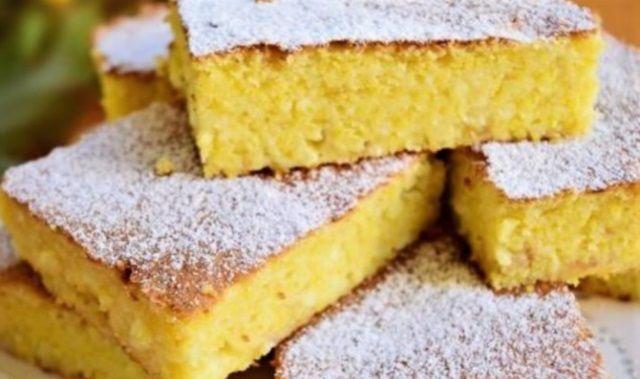Mod de preparare: Pentru început, se amestecă mălaiul, grișul și praful de copt, într-un castron mare. Apoi se separă albușurile de gălbenușuri, albușurile punându-se într-un bol iar gălbenușurile în alt bol. Peste gălbenușuri se pun cele 150 de grame de zahăr tos și cele 450 de grame de iaurt foarte gras. Ingredientele se amestecă cu un mixer. În compoziția obținută se adaugă treptat cei 150 ml de lapte și cele 100 de ml de ulei. Când ingredientele sunt foarte bine omogenizate, se renunță la utilizarea mixerului și se folosește un tel. În compoziția obținută de adaugă cele 150 de grame de mălai, cele 50 de grame de griș și cele două lingurițe de praf de copt. Când ingredientele uscate se unesc perfect cu cele umede, formând o compoziție fină, se poate opri amestecarea acestora. Într-un vas separat se bat albușurile spumă, după care se încorporează în compoziția de mai sus. Această încorporare a spumei se face treptat, cu atenție, deoarece aluatul trebuie să aibă o structură aerată.