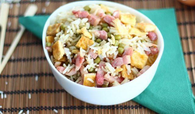 Mod de Preparare: Se fierbe orezul in apa sarata timp de 10 minute. Se bat ouale si fac omleta. Se taie omleta in cuburi mici. Se pune baconul la prajit. Cand este aproape gata se adauga mazarea si omleta taiata cubulete. Apoi se adauga orezul fiert si scurs+ sosul de soia. Se amesteca bine si ia de pe poc. Gata, ati gatit orez cantonez!
