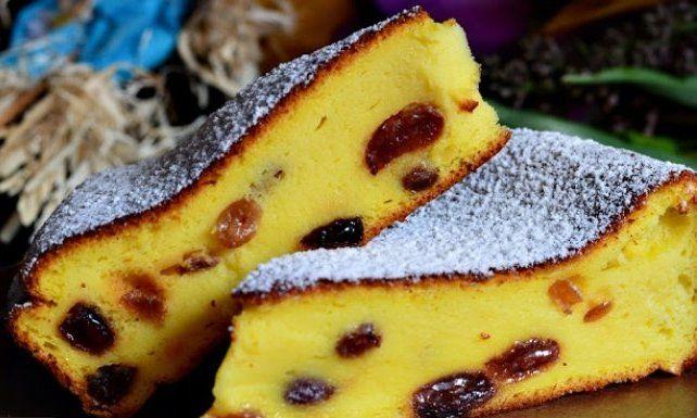 Mod de preparare: Cuptorul se preîncălzeşte la 160 de grade Celsius. Ouăle se separă. Gălbenuşurile şi zahărul se freacă bine cu untul şi un praf de sare, folosind un mixer, până se topeşte zahărul. Se adaugă brânza, smântâna, apoi făina amestecată cu praful de copt şi se amestecă bine, până se desfac cocoloaşele. Albuşurile se bat spumă, separat. Când s-au întărit suficient, se încorporează cu o spatulă în amestecul cu gălbenuş. Se adaugă vanilia, coaja de lămâie şi se amestecă uşor. La final se adaugă stafidele. Compoziţia se toarnă într-o formă rotundă unsă cu puţin unt. (Deasupra se presară cacao.) Se coace 45-50 de minute. Se serveşte caldă sau rece, după preferinţă.