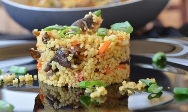 Mod de Preparare: Ceapa, ardeiul si ciupercutele se maruntesc dupa preferinta si se calesc in ulei sau unt. Cuscus-ul se fierbe in apa, atat cat scrie pe punga (se fierbe al dente, bobul nu trebuie sa se rupa de fiert ce e) dupa care se strecoara si se caleste in unt 2 minute. Se adauga peste el ceapa, ardeiul si ciupercutele calite. Se condimenteaza si sunt gata de servit.