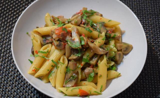 Mod de Preparare: Spalam ciupercile si le taiem fasii nu prea subtiri. Le sotam intr-o lingura de ulei, adaugam putina sare si le lasam sa fiarba acoperite pana scade apa. Socatem ciupercile din tigaie, punem 1 - 2 linguri de ulei si calim ceapa tocata marunt. Cand ceapa este translucida, adaugam rosiile decojite si tocate cubulete, ardeiul iute tocat marunt, usturoiul si telina tocata fin. Lasam la foc mic pana sosul se ingroasa si toate ingredientele sunt fierte, aproximativ 15 - 20 minute. Adaugam cimbrul, potrivim de sare si amestecam sosul cu pastele fierte si scurse. Aranjam pe farfurii pastele, adaugam ciupercile si deasupra presaram patrunjel proaspat tocat. Un pranz light de post daca nu folositi paste cu ou, cu proteine din ciuperci si doar 110 calorii la 100 de grame.
