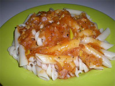 Mod de preparare: Pastele se fierb conform instructiunilor. Intre timp preparam sosul. Intr-o craticioara cu putin ulei incins, calim ceapa tocata marunt si usturoiul pisat. Cand sunt calite adaugam bulionul si apoi stingem cu 200 ml apa. Condimentam cu sare si piper... si alte condimente dupa preferinta si lasam la fiert pana mai scade sosul.