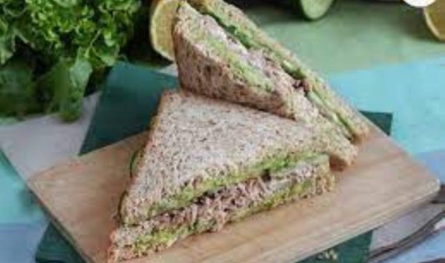 Mod de Preparare: Faramitati avocado cu o furculita. Intindeti pasta de avocado pe doua felii de paine sandwich. Asezati a treia felie de paine peste una dintre feliile de paine cu avocado. Intindeti maioneza peste aceasta felie si acoperiti cu ton. Puneti feliile de castravete deasupra. In cele din urma, inchideti sandvisul cu ultima felie de paine unsa cu avocado.