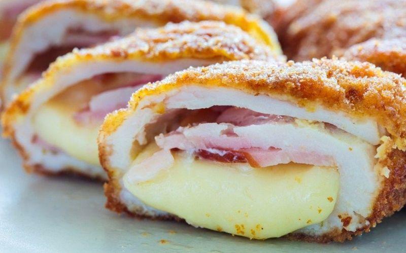 Mod de Preparare: Taiem cotletul in felii mai grosute, le batem subtiri, se sareaza, se pipereaza. Pe felia de carne asezam o felie de sunca,una de cascaval. Rulam carnea, capetele le inchidem aidoma ca la sarmale, le dam prin faina, ou, pesmet si le prajim pana devin aurii. Le servim cu garnitura de cartofi pai.
