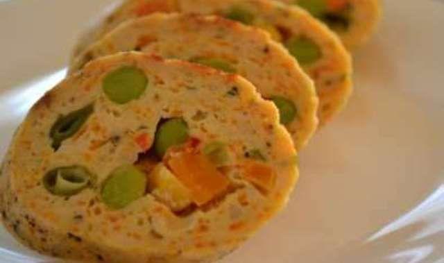 Mod de Preparare: Tocam pieptul de pui impreuna cu usturoiul si il amestecam cu morcovul dat pe razatoarea mica si oul. Condimentam cu sare si piper dupa gust. Pe o folie de aluminiu unsa cu putin ulei intindem compozitia de carne intr-un strat subtire. Presaram deasupra legume mexicane congelate. Cu ajutorul foliei de aluminiu rulam cat mai strans. Impachetam rulada il folia de aluminiu, o asezam intr-o tava care merge la cuptor si turnam apa cam pana la jumatatea ruladei. Dam rulada la cuptor pana scade tot lichidul din tava. Desfacem apoi rulada din folie si o mai lasam la cuptor cateva minute sa se rumeneasca usor. Lasam rulada sa se racoreasca si apoi o putem felia.