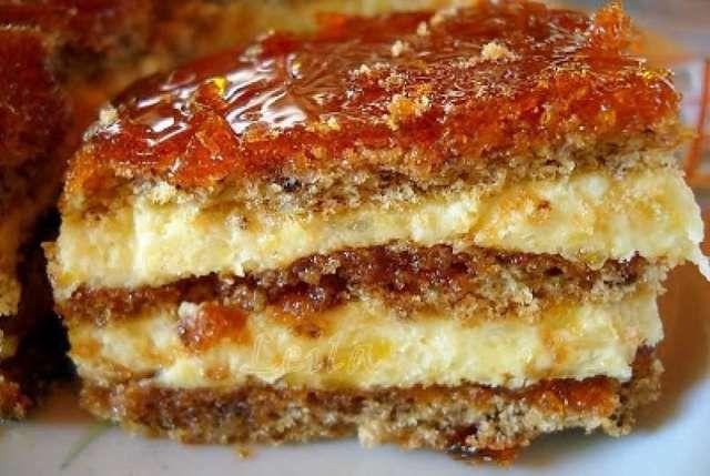 Mod de Preparare: Din ingredientele pentru foi preparam compozitia ca pentru piscot. Cele 6 galbenusuri le frecam cu 6 linguri zahar si 6 linguri apa. Separat albusul se bate spuma, adaugam treptat galbenusurile frecate si amestecam usor. Adaugam faina si nuca macinata treptat si in cele din urma praful de copt stins in putina zeama de lamaie. Din aceasta compozitie coacem pe dosul tavii 3 foi. Caramelizam cei 300 gr de zahar si o parte de la 2 foi coapte le ungem cu aceasta. Ne apucam sa preparam crema 3 galbenusuri impreuna cu 3 linguri de faina si 100 g zahar le amestecam si adaugam treptat cei 200 ml lapte rece dupa care il punem la foc si il fierbem pana se ingroase. Lasam la racit si adaugam cei 200 g Rama si mixam bine pana obtinem o crema omogena. Crema astfel obtinuta o intindem pe una din foaia unsa cu zaharul caramel, o acoperim cu urmatoarea foaie, punem restul de crema si acoperim cu foaia ramasa . Deasupra putem orna ori cu zahar caramelizat, ori cu glazura de ciocolata. O alta varianta ar fi ca deasupra sa ornam cu cele 3 albusuri batute spuma cu 150 g zahar pe baie de aburi.
