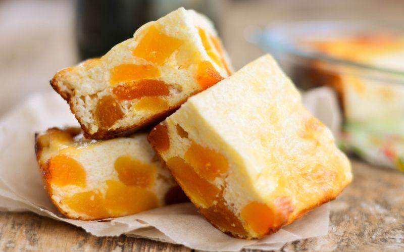 Mod de preparare: Pregătim mai întâi aluatul. Se pune făina într-un bol și se amestecă cu sarea, apoi se adaugă untul moale și tăiat cubulețe. Se amestecă cu vârful degetelor și, când a devenit un amestec nisipos, se toarnă laptele sau apa. Se amestecă și se întinde o foaie cu care se îmbracă fundul și pereții unei tăvi de copt. Pentru umplutură, brânza se mixează cu ouăle, grișul și zahărul. Peste aluat se pune un strat de caise, curățate de sâmburi și apoi brânza. Se dă tava la cuptor pentru 40 de minute.