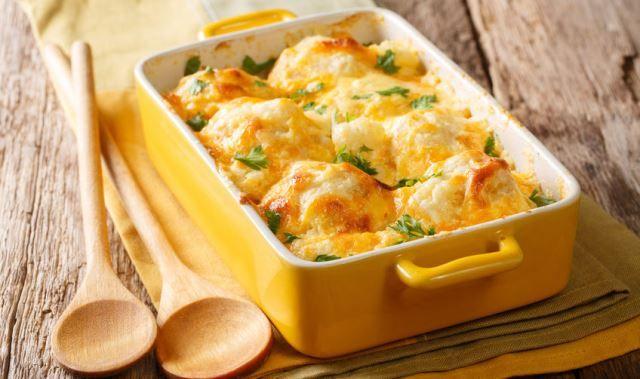Mod de Preparare: Daca folositi conopida proaspata, aceasta se spala, se rupe buchetele si se opareste cam 10 minute in apa cu sare, dupa care se scurge si se lasa la racit. Noi avem la congelator conopida gata oparita, a dezghetat-o si am folosit-o ca atare. Batem ouale ca pentru omleta, amestecam cu branza dulce, telemeaua razuita, untul taiat bucatele si iaurtul. Cu o furculita zdrobim usor conopida. Ungem cu unt vasul in care pregatim, il tapetam cu gris sau pesmet si asezam un strat de conopida. Deasupra turnam un strat de sos, apoi alt strat de conopida si altul de sos. Dam la cuptorul incins la 180 de grade pentru 15 - 20 de minute, dupa care presaram cascavalul razuit si mai lasam vreo 20 de minute, pana se rumeneaste frumos.Avem o mancarica delicioasa, super rapida si usor de facut, dar si mai usor de mancat, cu doar 150 calorii la 100 de grame.