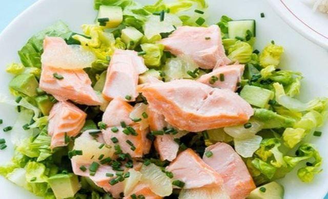 Mod de Preparare: Salata se spala bine, se rupe in bucati si se pune intr-un bol. Se curata ciupercile, le fierbem aprox. 15 min. dupa care se taie in felii subtiri si se adauga peste salata. Somonul se rupe in bucati si se pune in bol. Se stropeste salata cu uleiul de masline amestecat cu sare si zeama de lamaie.