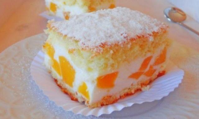 Mod de Preparare: Incalzim cuptorul la 180 grade. Asezam o bucata de hartie de copt, intr-o tava de 36/ 22. Cerneti faina intr-un vas inalt, adaugati, un praf de sare, zaharul pudra, praful de copt, untul moale si oul. Incepeti sa framantati aluatul cu mana, pana ce obtineti un aluat moale, care nu se lipeste de mana si pe care sa-l puteti intinde usor. Presarati putina faina pe masa si intindeti o foaie de aluat, de marimea tavi. Asezati cu grija foaia de aluat in tava. Daca sunteti incepatori/ incepatoare, intindeti foaie direct pe hartia de copt si veti putea transfera aluatul cu usurinta in tava. Scurgeti bine piersicile din compot si taiati-le in cuburi sau felii, eu am preferat in cuburi. Presarati o lingura de gris peste aluat, pe urma asezati piersicile taiate si presarati restul de gris peste ele. Pe urma bateti ouale cu zaharul si zaharul pudra cu vanilie, sau mixati cu un mixer, pana ce devin cremoase. Adaugati amidonul/ faina si smantana, apoi mixati totul. Pe urma adaugati branza de vaci, scursa inainte de apa si mixati cu putere. Crema de branza obtinuta se toarna peste persici si se niveleaza. Se coace in cuptorul preincalzit timp de 30 minute. Incercati cu o scobitoare, daca iasa curata atunci este gata coapta. Lasati prajitura sa se raceasca in tava, pe urma presarati zahar pudra si feliati. Savurati cu placere!!!
