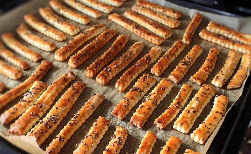 Mod de Preparare: Am dat pe razatoarea mare branza. Daca untul/margarina e rece merge si el/ea dat/a pe razatoarea mare. Margarina mea de la piata pana acasa a fost la fix ca si temperatura. Am adaugat-o peste branza. La fel si ouale, cateva seminte de chimen si iaurtul. Le-am amestecat bine si am inceput sa adaug faina pana ce aluatul a devenit bun de modelat. L-am impachetat intr-o folie de aluminiu si l-am dat la rece pentru 30 de minute. Dupa jumatatea de ora am inceput sa intind aluatul cu sucitorul. Nu trebuie nici prea subtire dar nici foarte gros. Peste foaia intinsa am uns cu ou batut pentru ca semintele si cascavalul sa se ''lipeasca'' mai bine. Am taiat fasii cu cutitul pentru pizza si am copt aproximativ 15 minute la 180 grade fiecare tava. Au iesit 4 tavi din compozitia de mai sus...insuficiente pentru pofta mea nebuna. Data viitoare o sa fiu mai atenta la detalii si poate gasesc si forma de covrigei caci aluatul e potrivit si pentru ei.