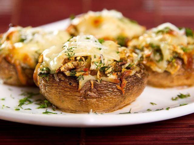 Mod de Preparare: Curatam ciupercile, taiem coziile si tocam marunt, taiem legumele si pieptul de pui marunt intr-o tigaie punem pieptul de pui la prajit in ulei, condimentam si lasam 2-3 minute adaugam ceapa verde, lasam un min, ardeiul, coziile de la ciuperci, rosia si lasam pe foc mediu sa scada intr-o tava punem hartie de copt, ungem cu unt sau ulei si asezam ciupercile, punem din compozitia de carne si legume introducem la cuptor cca 20 minute, se scoate tava si se pune cascaval taiat feliute mai subtiri peste ciuperci se mai lasa la cuptor pana ce se topeste cascavalul.
