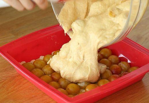 Mod de Preparare: Pentru blatul amestecati untul cu zaharul. Intindeti-l partea de jos a formei si introduceti-l în cuptor timp de 10 minute la 180° C. Scoateti tava din cuptor si aranjati fulgii de migdalele deasupra. Se spala, se taie in jumatati, prunele. Se aseaza peste fulgii de migdale.