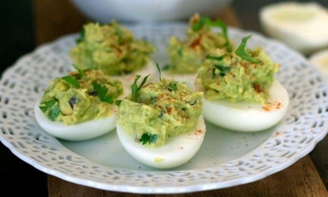 Mod de preparare: Fierbe ouale tare (6-7 minute), lasa-le in apa rece si apoi cojeste-le. Dupa ce s-au racit, taie-le pe jumatate si scoate-le galbenusul. Taie avocado, scoate-i pulpa si zdrobete-o cu furculita, impreuna cu galbenusurile. Adauga sarea, piperul, zeama unui lime si verdeturile tocate cat mai marunt. Umple ouale cu pasta de avocado obtinuta si orneaza-le cu patrunjel sau busuioc, dupa preferinta.