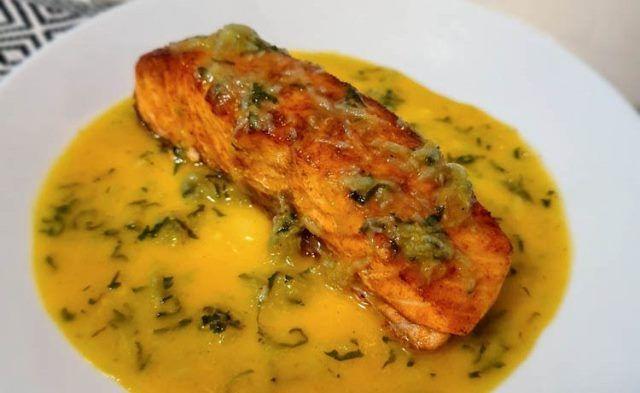 Mod de Preparare: Pestele se spala, se sterge bine de apa si se pudreaza cu sare, piper si putina faina.Usturoiul se taie feliute. Intr-o tigaie se infierbanta uleiul si se caleste usturoiul pana devine auriu. Se scoate deoparte.In tigaie se pune pestele si se rumeneste pe ambele parti. Se scoate deoparte. Se scurge bine uleiul din tigaie si se sterge putin tigaia cu un servet de hartie. Se pune untul si cand s-a topit pe jumatate se adauga faina si se amesteca bine, tinand pe foc mic aprox. un minut.