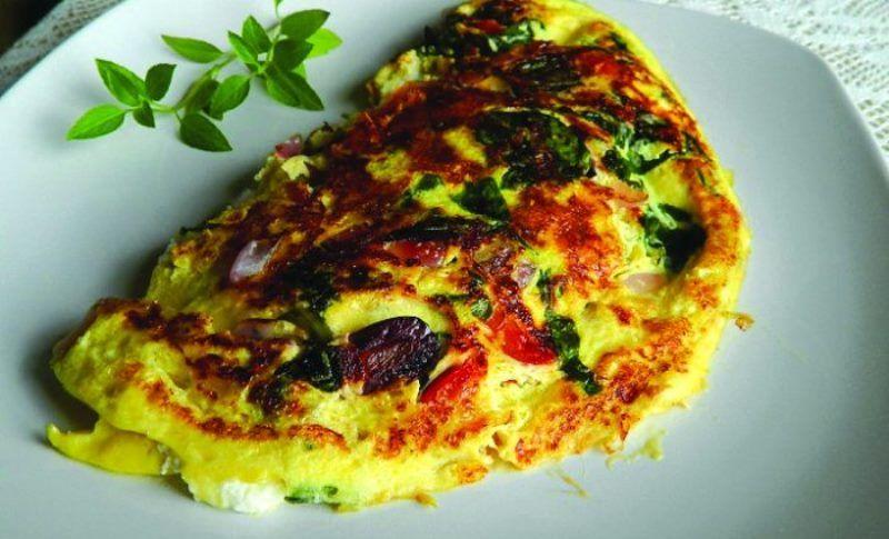 Mod de Preparare: Legumele si verdeata se pun intr-o tigaie, unde varsati putin ulei masline bun pentru prajit. Se calesc putin timp. Intr-un bol se amesteca albusurile, ouale batute spuma. Se amesteca bine, se toarna omleta peste legumele calite. Se amesteca. Se adauga branza si rosia. Se pune capac, se tine pe foc, pana ce omleta devine pufoasa.