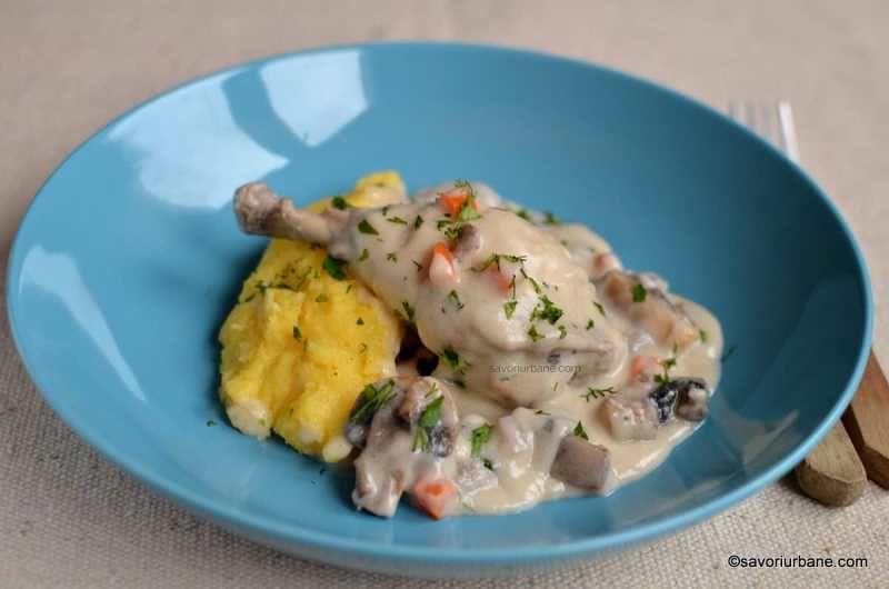 Mod de Preparare: Taiem ceapa marunt, zdrobim 1 catel de usturoi si le punem la calit intr-o cratita unde a pus la topit nuca de unt si uleiul. Dupa ce a devenit sticloasa adaugam carnea de pui taiata fasiute si continuam calirea pana ce isi schimba culoarea. Dupaceea adaugam ciupercutele pe care le acoperim lasand capacul putin deschis. Se vor gati in suc propriu, iar cand acesta a scazut completam cu un paharel de apa sa fie acoperite. Dupa ce a pus apa lasam cratita descoperita lasam sa fiarba incet 10 minute pana scade putin din apa. in acest timp amestecam faina cu smantana. Si turnam peste ciuperci, potrivim de sare si piper si lasam sa mai fiarba 5 minute amestecand incontinu. La finele celor 5 minute punem cei 2 catei de usturoi ramasi pisati impreuna cu patrunjelul taiat si mai lasam pe foc inca 1 minut.