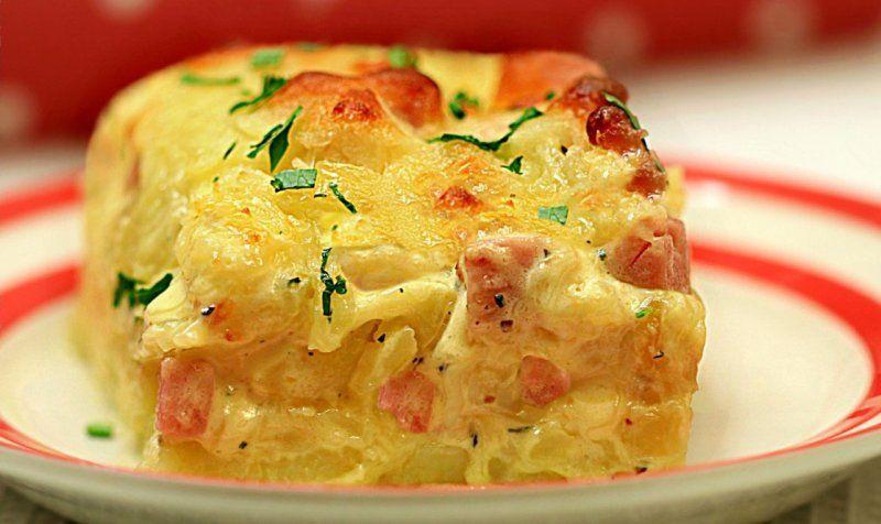 Mod de preparare: Cartofii curățați se taie în rondele și se rumenesc în ulei 10 minute. Se scurge apoi uleiul și se adaugă smântâna, sare și piper. Se lasă pe foc 5 minute, după care se presară cașcavalul. Se pun apoi la cuptor pentru 15 minute.