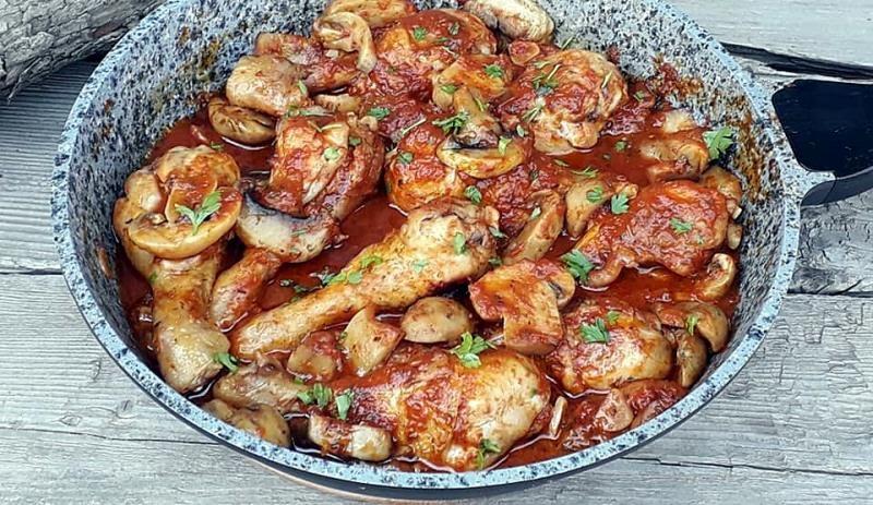 Mod de Preparare: Am tocat toate legumele. Ceapa si morcovul mai marunt iar ciupercile in 4-6. Puiul l-am taiat cubulete potrivite. In putin ulei de masline am calit ceapa pana a devenit translucida. Cu ceapa am calit si cubuletele de pui. Morcovul taiat cubulete mici l-am calit cu ceapa si puiul apoi am adaugat ciupercile. Ciupercile lasa apa asa ca am mai adaugat doar o jumatate de cana. Am acoperit cratita cu un capac sa se inabuse pentru 5 minute apoi am luat capacul sa scada apa. Se fac foarte repede asa ca dupa 15 minute am adaugat bulionul si am mai tinut pe foc inca 10 minute. Se poate adauga putin faina daca va place sosul mai legat. Cand am fost gata am adaugat mararul tocat marunt. Pofta buna!