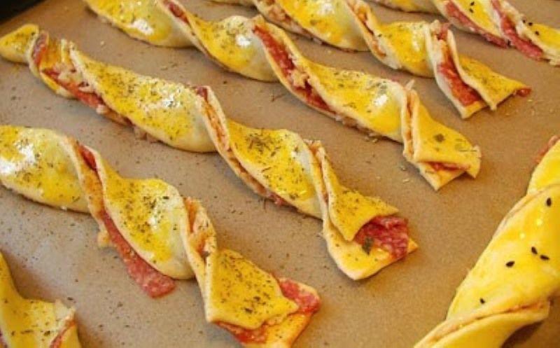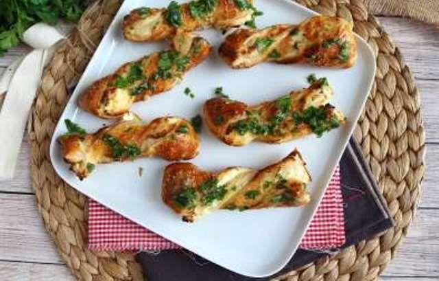 Mod de Preparare: Preîncălziți cuptorul la 180°C. Desfaceți aluatul foietaj și întindeți crema de brânză pe toată suprafața aluatului. Presărați parmezan deasupra (păstrați puțin pentru mai târziu). Îndoiți aluatul în jumătate și tăiați fâșii de cel puțin 2 cm grosime. Răsuciți fâșiile și așezați-le pe o tavă de copt acoperită cu hârtie de copt (practic: puteți reutiliza hârtia de la aluat!). Ungeți deasupra cu o pensulă, oul bătut. Presarați cu parmezan. Coaceți 20 de minute la 180°C. Topiți untul și adăugați praful de usturoi (sau usturoi proaspăt) și pătrunjelul proaspăt tocat. Amestecați bine. Ungeți baghetele cu amestecul anterior. Gata!