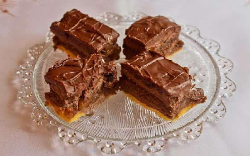 Asamblarea: peste foaia galbena se pune 1/2 din crema, peste crema bezeaua cu nuca, peste bezea cealalta jumatate de crema, stafidele care in prealabil au fost inmuiate in rom si deasupra intindem crema de ciocolata care e bine sa fie la temperatura camerei pentru a fi usor de intins.