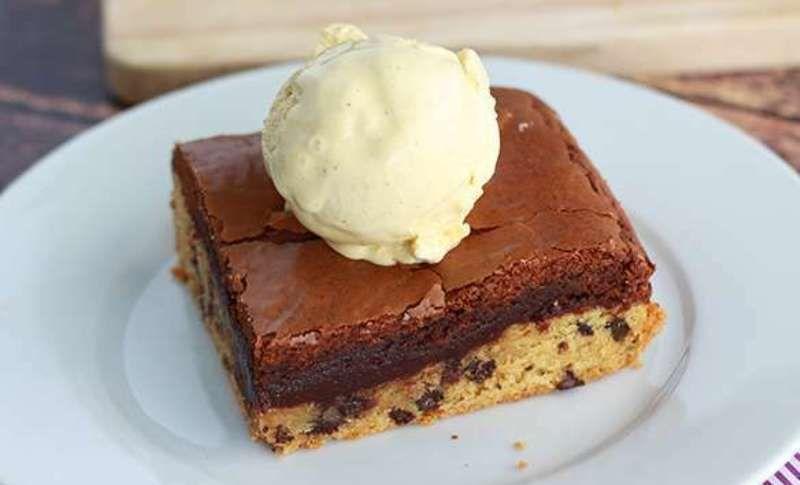 Aluatul de negresa: Se topeste ciocolata cu untul. Se amesteca ouale cu zaharul, apoi se adauga faina si se amesteca bine. Apoi adaugati ciocolata topita cu unt si amestecati bine. Se toarna acest amestec deasupra aluatului de fursecuri si se intinde bine. Dati la cuptor 30 minute la 180°C. Asigurati-va ca preparatul s-a racit inainte de a-l scoate. Serviti cu o cupa de inghetata de vanilie.