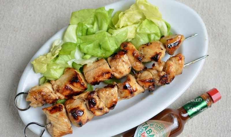 Amestecati, infoliati si lasati sa se odihneasca cel putin 2 ore la frigider. Odata ce a trecut acest timp, scurgetți bucatiile de pui de mariada si intepati-le pe frigarui. Asezati-le pe o tava de copt acoperit cu hartie de copt si gatiti timp de 5 minute pe fiecare parte, in cuptor. Setati functia „gratar”. Presarati frigaruile cu coriandru/patrunjel tocat si savurati imediat!
