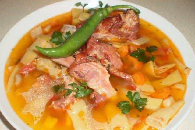 Mod de Preparare: Intr-o oala prajim carnea, kaizerul, morcovul ras la care adaugam jumatate de lingura de vegeta... prajim pt 2-3 minute. apoi adaugam ceapa, telina si morcovul intregi se adauga apa, sa acopere legumele. Dupa ce fierb legumele se scot afara dupa ce carnea s-a fiert si supa clocoteste, se adauga cartofii si se mai lasa un sfert de ora apoi intr-un castron se amesteca 2 polonice de supa si smantana, apoi se adauga peste supa lasati sa mai dea in clocot o data, de doua ori. Se ia de pe foc si se adauga 2-3 catei usturoi razuiti fin, verdeata, se potriveste de sare si piper si se pune un capac deasupra pt cateva minute. Daca fac o cantitate mai mare de supa, aleg sa nu pun usturoi in toata compozitia ci dau fiecaruia sa-si puna individual, mai ales ca usturoiul schimba gustul pt a doua zi!
