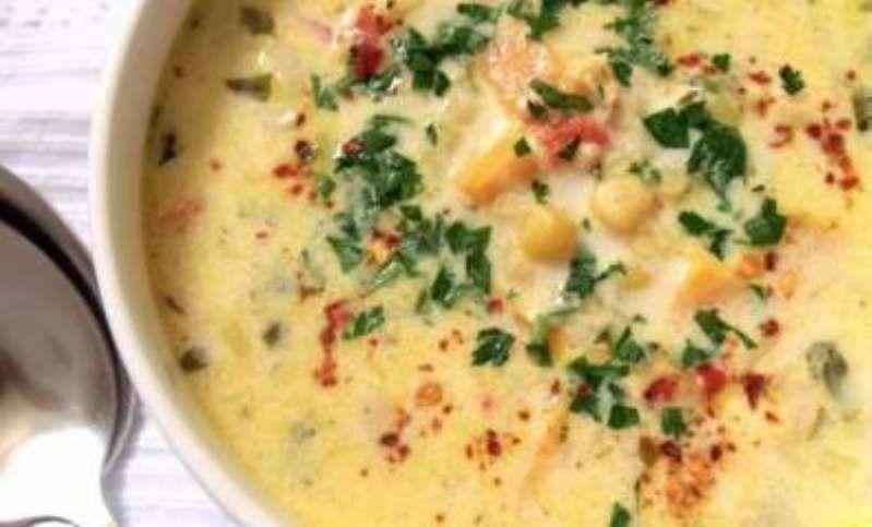 Mod de Preparare: Procesul de executie este foarte simplu si predictibil: prazul cu ceapa si cu usturoiul se perpelesc in uleiul de masline pina se inmoaie si devin translucide, cca 10 minute, dupa care adaugam cartoful dulce si boabele de porumb, le acoperim cu supa de legume si le fierbem cca 25-30 minute. peste iaurtul aflat intr-un castron adaugam cantitati mici de supa si amestecam, pina cind iaurtul se subtiaza, apoi adaugam acest amestec in vasul principal si omogenizam, aducem iar la fierbere pentru citeva minute. potrivim de sare si piper, inchidem focul, adaugam si patrunjelul tocat, mai putem adauga si in momentul servirii, pentru decor. Putem completa la servire cu putin ardei iute pisat, contrasteaza intr-un mod placut cu "dulceata" supei.