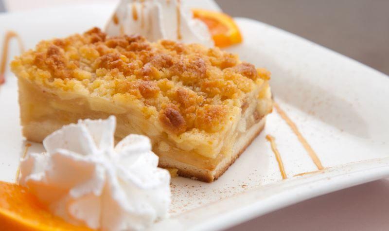 Deasupra amestecului de gris pune 1/2 din cantitatea de unt ramasa, taiata cubulete cat mai mici, urmata de toata compozitia de mar cu scortisoara. Deasupra marului ras pune cealalta jumatate de amestec uscat, urmat de untul ramas, taiat cubulete. Da tava la cuptor pana cand prajitura se rumeneste (50-60 min).