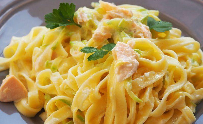 Mod de Preparare: Mai întâi căliți ceapă într-o tigaie cu un strop de ulei de măsline (va sfătuim sa o tocați mărunt). Spălați dovlecelul, dați-l pe răzătoare, adăugați-l în tigaie și amestecați. Apoi adăugați puțină apă și continuați să gătiți la foc mediu câteva minute, amestecând din când în când. Aduceți o oală cu apă cu sare la fiert. Apoi turnați pastele și gătiți conform instrucțiunilor de pe ambalaj. Acum tăiați somonul în cuburi mici si adăugați-l în tigaia cu dovleceii. Continuați să gătiți câteva minute, apoi adăugați puțină apă din cea în care au fiert pastele, amestecați și opriți focul (în timp ce așteptați ca pastele să fie gata). Scurgeți pastele (păstrați puțină apă de gătit) și turnați-le în tigaia cu somonul afumat și sosul de dovlecei. Puneți piper după gust și căliți până când pastele devin cremoase (aproximativ 1 minut). Poftă bună!