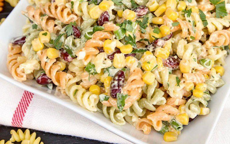 Mod de Preparare: Pastele se fierb in apa cu sare conform instructiunilor de pe ambalaj. Pastele fierte se clatesc cu apa rece, apoi se scurg bine. Se adauga sunca taiata cubulete, gogosarii maruntiti, mazarea si porumbul. Peste salata se toarna maioneza si se amesteca usor totul. Se presara deasupra putin piper proaspat macinat. Salata se pastreaza la rece pana la servire.
