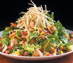 Pieptul de pui se spala si se pune la fiert in apa cu sare. Cand este fiert se lasa putin la racit si se taie bucatele. Se pune intr-un castron. Alaturi se pun legumele spalate, curatate si rase pe razatoarea mare. Se adauga si maslinele.