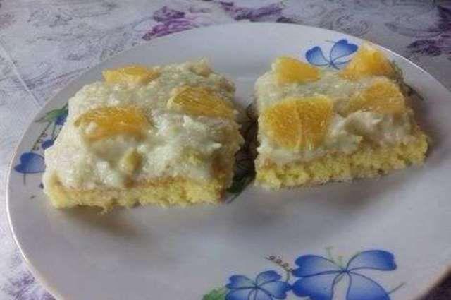 Mod de Preparare: Se bat ouăle cu sare și zahar apoi se adaugă praful de copt și faina. Se coace 30 de minute la 180 grade. Se amesteca ouale cu zaharul, faina, laptele și nuca se cocos si se fierbe pana se îngroașă. Se adaugă untul si esenta. Se taie portocalele marunt. Se pune crema rece peste blat, portocale si se lasa la rece peste noapte.