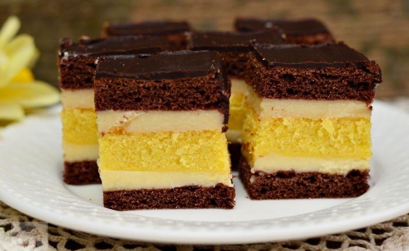 Cum se montează prăjitura: Se așază o foaie de cacao în tavă. Se întinde jumătate din crema preparată. Se așază pandișpanul deasupra. Se adaugă peste pandișpan restul de cremă. Se acoperă totul cu a doua foaie de cacao. Se topește ciocolata împreună cu untul, la baie de abur. Se întinde glazura deasupra foilor de prăjitură. Recomandat este să fie lăsată peste noapte, pentru a avea un rezultat cât mai aromat. A doua zi, se poate tăia în forma dorită și poate fi servită. Poftă bună!