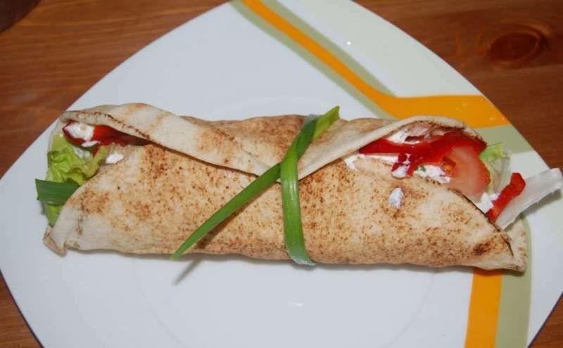 Mod de Preparare: Daca folositi pulpe se degreseaza bine si se taie in fasii subtiri. Usturoiul impreuna cu sarea se mojareaza pana devine o pasta. Intr-un castron se pune carnea, se adauga sucul de lamaie, iaurtul, condimentele si usturoiul. Se amesteca, se acopera cu folie alimentara sau cu un capac si sa baga in frigider pentru minim 2 ore. Se poate si de pe o zi pe alta. Dupa ce a trecut timpul alocat marinarii, se incinge o tigaie mare se toarna 1 lingura de ulei si se pune carnea. Din cand in cand se mai amesteca pentru a se patrunde uniform. Ingredientele pentru salata se spala, se sterg si se taie. Se incalzeste usor o lipie intr-o tagaie fierbinte, se aseaza frunze de salata, felii de rosii si ardei, ceapa verde, cateva frunze de patrunjel, carne si 1-2 lingurite de smantana. Se continua procedeul pana se termina ingredientele.