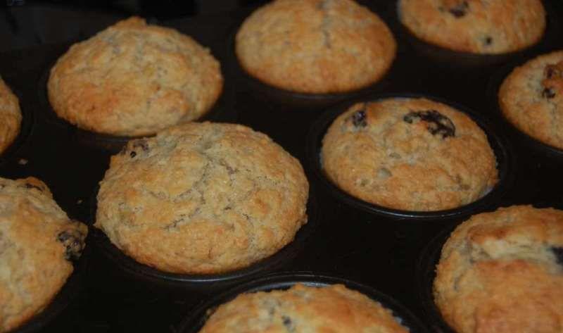 Mod de Preparare: Se topeste untul si se lasa sa se raceasca. Intre timp se fac bananele piure. Intr-un vas se freaca untul impreuna cu zaharul. Se adauga piureul de banane si ouale. Se incorporeaza faina amestecata cu praful de copt si bicarbonatul. Se adauga nuca de cocos si ciresele. Se tapeteaza o tava pentru briose, se imparte compozitia si se baga in cuptorul preincalzit la 170 grade pentru 30-35 minute. Dupa ce se scot se lasa 10 minute in tava si apoi se racoresc pe un gratar.