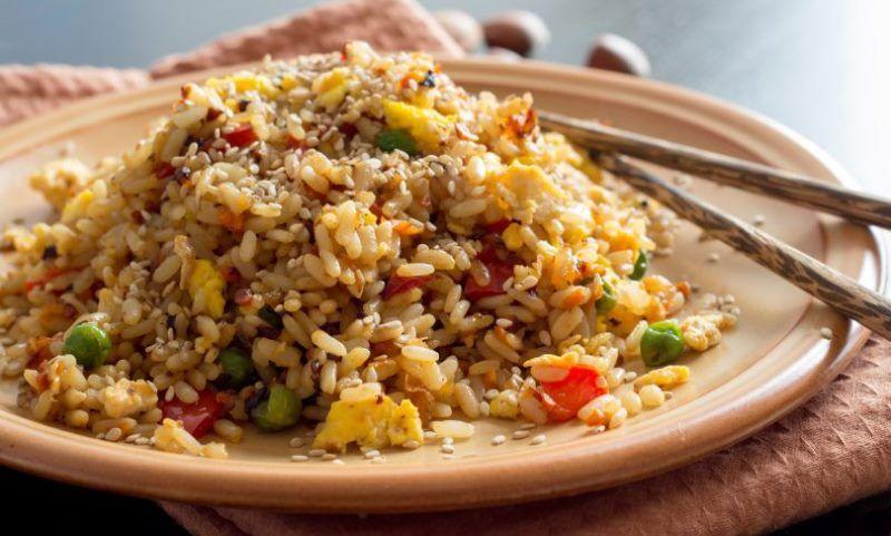 Mod de Preparare: Orezul se fierbe cu o zi inainte de al praji si se tine la rece. Se spala in apa rece, il punem intr-o cratita impreuna cu 300 ml apa, si cand a incepe sa dea in clocot, il acoperim cu un capac. Reducem flacara si il lasam sa fiarba la foc mic circa 10 minute, dupa care stingem flacara si il mai lasam inca 10 sub capac. Dam capacul la o parte, lasat sa se raceasca si punem la frigider pana a doua zi. Preparam omleta din cele doua oua, pe care o asezonam si in care taiem marunt cimbru proaspat. Prajim pe ambele parti, intr-o lingura de unt, apoi rulam si cu un cutit ascutit, taiem fasii foarte subtiri. Castravetele il taiem bucatele mici, la fel ardeiul si morcovul. Ceapa si usturoiul le tocam marunt. Intr-o tigaie wok, incingem uleiul si punem la prajit legumele, pentru 2-3. A adaugat orezul si dupa alte 3, punem si taiteii de omleta. Amestecam de cateva ori si lasam foarte putin pe foc, pentru a se patrunde aromele, apoi oprim flacara.