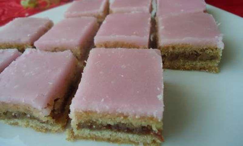 Mod de Preparare: Se face un aluat din ingredientele de mai sus si se lasa la rece pentru o ora. Se face un aluat din ingredientele de mai sus si se lasa la rece pentru o ora. Se imparte aluatul in doua parti si se intind doua foi, una se pune intr-o tava tapetata cu hartie de copt, peste se pune un strat de gem si apoi se prasara nuca macinata, deasupra se pune a doua foaie, se coace la foc moderat. Pentru glazura a amestecat zahar pudra cu cateva lingurite de apa si cocolrant apoi cand prajitura s-a mai racit se pune glazura peste.