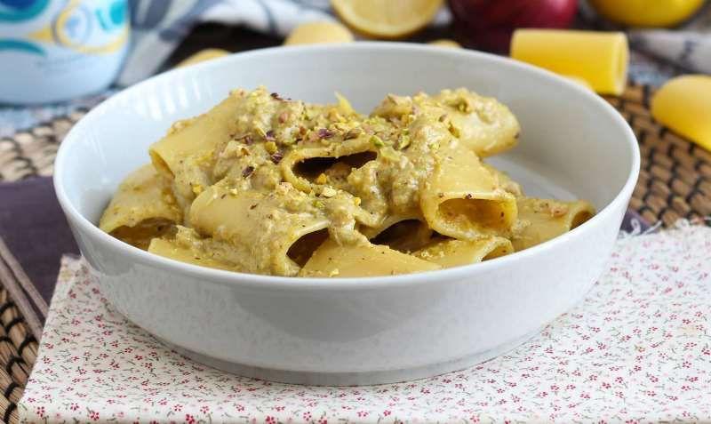Mod de Preparare: Puneți apă cu sare la fiert într-o cratiță. Adăugați pastele și gătiți-le în funcție de timpul indicat pe ambalaj. Între timp pregătim sosul: tocați fisticul într-un blender. Adăugați ulei și amestecați din nou. Adăugați sucul de lămâie și amestecați până obțineți o pastă fină. Într-o tigaie turnați un strop de ulei de măsline și căliți ceapa tocată. Se adaugă tonul, se amestecă și se fierbe câteva minute la foc mediu. Adăugați fisticul / uleiul de măsline / coaja de lămâie și amestecați bine. Adăugați 2 - 3 linguri de apă din care au fiert pastele, amestecați și gătiți la foc mic în timp ce amestecați. Scurgeți pastele și adăugați-le în tigaie (nu uitați să economisiți apa de gătit pentru orice eventualitate). Se amestecă câteva minute cu o lingură de lemn și se adaugă apă de gătit, dacă este necesar. Serviți pastele într-o farfurie și ornați cu fistic zdrobit și coajă de lămâie, sunt cremoase și reconfortante sunt gata!