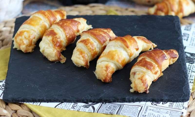 Mod de Preparare: Desfaceți aluatul de foietaj. Tăiați șunca presată în bucăți. Tăiați aluatul în 16 triunghiuri. Așezați aproximativ o linguriță de branza pe fiecare bază a fiecărui triunghi. Deasupra se presară cașcaval ras apoi se așează o bucată de șuncă peste cașcaval. Preîncălziți cuptorul la 180°C. Rulați triunghiurile începând de la bază și terminând la vârf. Îndoiți capetele spre interior, pentru a forma semilune. Aranjați cornurile astfel formate, pe o tavă de copt acoperită cu hârtie de copt. Ungeți fiecare cornule cu gălbenuș. Coaceți cornurile la cuptor pentru 20 de minute la 180°C. Gata, aperitivul este gata! Toată lumea va adora aceste cornuri simple, dar delicioase ;-)