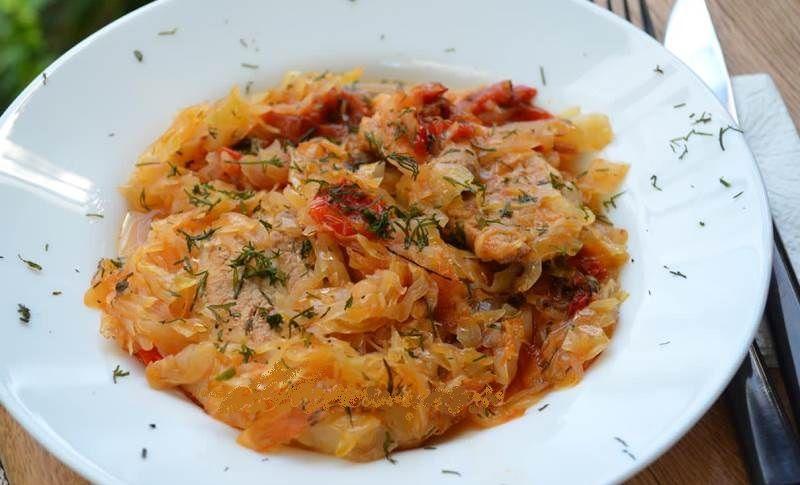 Mod de Preparare: Se taia ceapa marunt si se prajeste in unt/ulei pana capata o culoare usor aurie.Peste ceapa se adauga carnea, portionata in prealabil, si se prajeste aproximativ 2 minute pe fiecare parte. Se curata varza de cotoare, se taia in felii subtiri, se freaca cu sare dupa care se fierbe inabusit sub capac cca 30 minute. Spre sfarsitul fierberii se adauga morcovul dat pe razatoarea mare.Se aseaza varza in vasul roman impreuna cu rosiile care au fost curatate si taiate cubulete. Peste se pune carnea cu sosul format. Se condimenteaza (depinde de gustul fiecaruia… noi fost cam zgarciti la condimente si a iesit mancarea cam dulce). Se adauga 1/2 kg bors acru amestecat cu pasta de tomate. Se da la cuptor si se lasa la foc mic inca 40 min – 1 h.