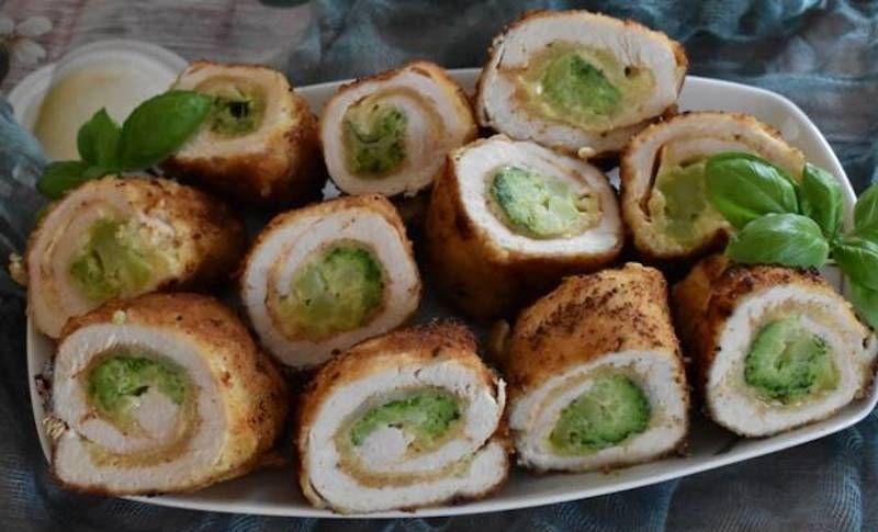 Mod de Preparare: Se spala pieptul de pui, se usuca cu prosoape absorbante si se taie felii. Se bat usor, se condimenteaza cu sare si piper, dupa gust, si se ung cu mustar. Alasat fileurile de pui la rece, o ora, in vin alb. Se spala broccoli, se desface in buchetele si se opareste trei minute in apa clocotita cu o lingurita de sare. Se scurg si se lasa sa se raceasca. Ardeiul rosu se curata si se taie fasii.-E nu a avut ardei, am pus morcov. Se asaza pe fiecare felie de pui o bucata cascaval, broccoli si doua fasii de morcov. Se ruleaza, se invelesc intr-o felie de bacon-a avut sunca afumata de casa- si se prind cu o scobitoare- sau cu ata de bucatarie. Se prajesc pe toate partile in ulei incins 8-10 minute, cu o crenguta de cimbru in el-eu am avut doar cimbru uscat. Se acopera tigaia si se lasa 15 minute. Se servesc alaturi de broccoli si de cartofi fierti.