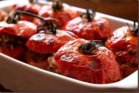 Pregatim sosul din miezul ramas de la scobirea rosiilor, o lingurita de zahar, sare, piper si boia. Turnam sosul peste rosii si dam forma la cuptor aproximativ 40 min la foc potrivit. Se servesc calde, iar daca vreti puteti adauga smantana.